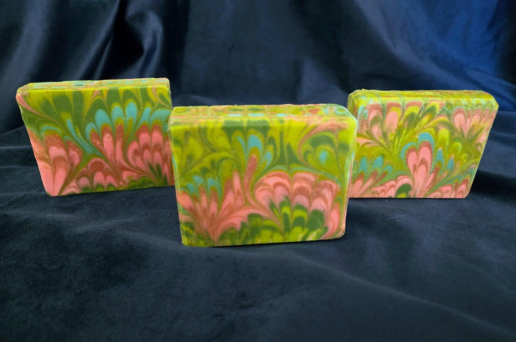 This was exactly what I needed for my soap inspired by Anna's green skirt in the first Frozen movie. I used 3 Olive Martini, Lettuce Entertain You, Snake Island, Blue Tide, Angry Rose, and Bubble Gum. They all behaved perfectly and are so vibrant!