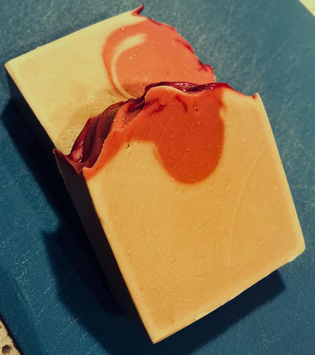 Used for my CP soap, cherry and almond scented. Unfortunately, the cherry FO caused the soap to harden almost instantly, so I didn't get the swirl I was planning, However, I couldn't have asked for a better color. I absolutely love how this turned out. I used 1 tsp per 0.75 lb of oils.