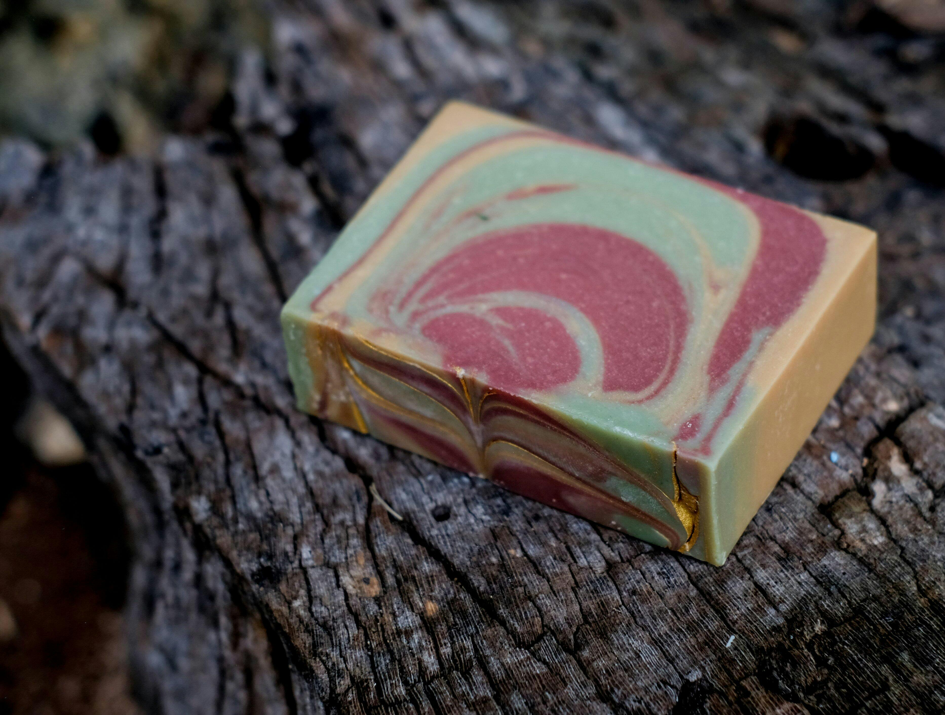 In freshly poured soap, the green is dark, awful, and nothing like in the jar. The next day, it's definitely better, far lighter. I'm giving it four stars because I nearly had a heart attack. (Tell us it morphs!!!!) The picture on the left is after 24 hours. Picture on the right is the fresh soap. Phew.