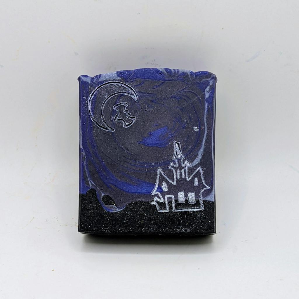 Testing with 3 grams per pound of cold process soap batter produced a smoky purple that became richer and deeper while it cured.
