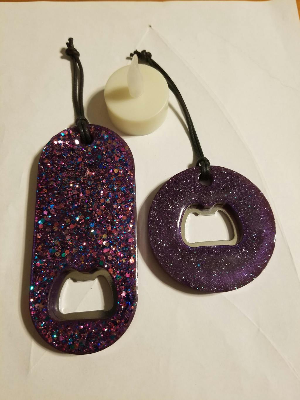 This color is absolutely gorgeous! It is a strong, lush purple and looks amazing in resin. I used it in these bottle openers and it really set off the glitter nicely.