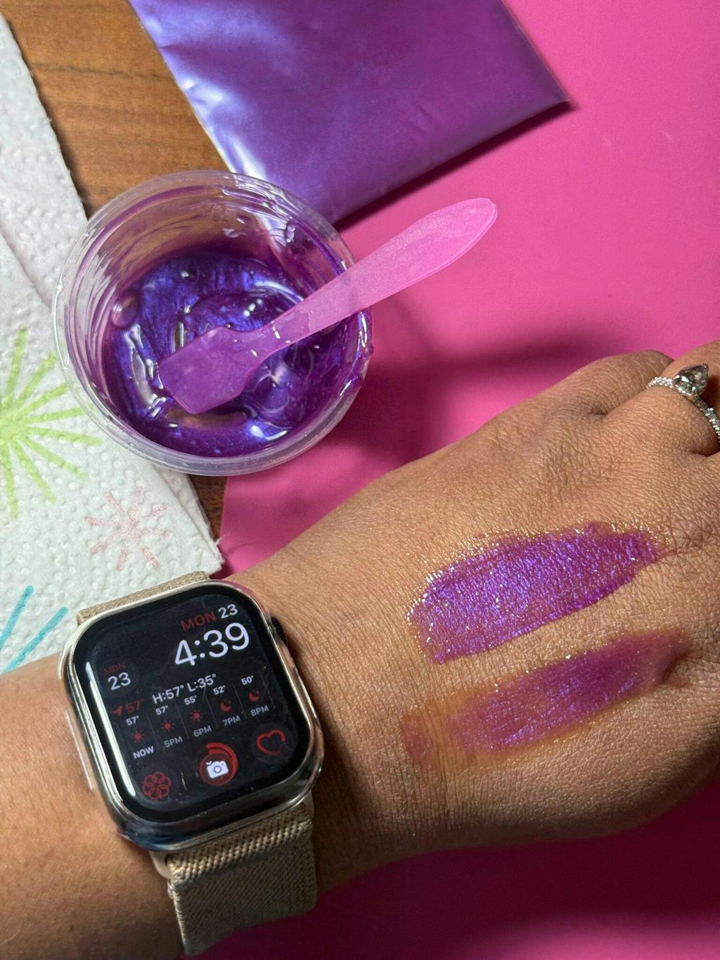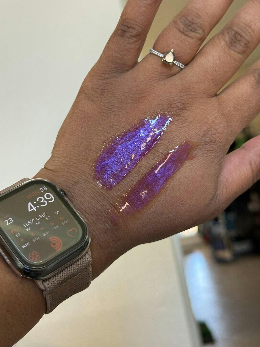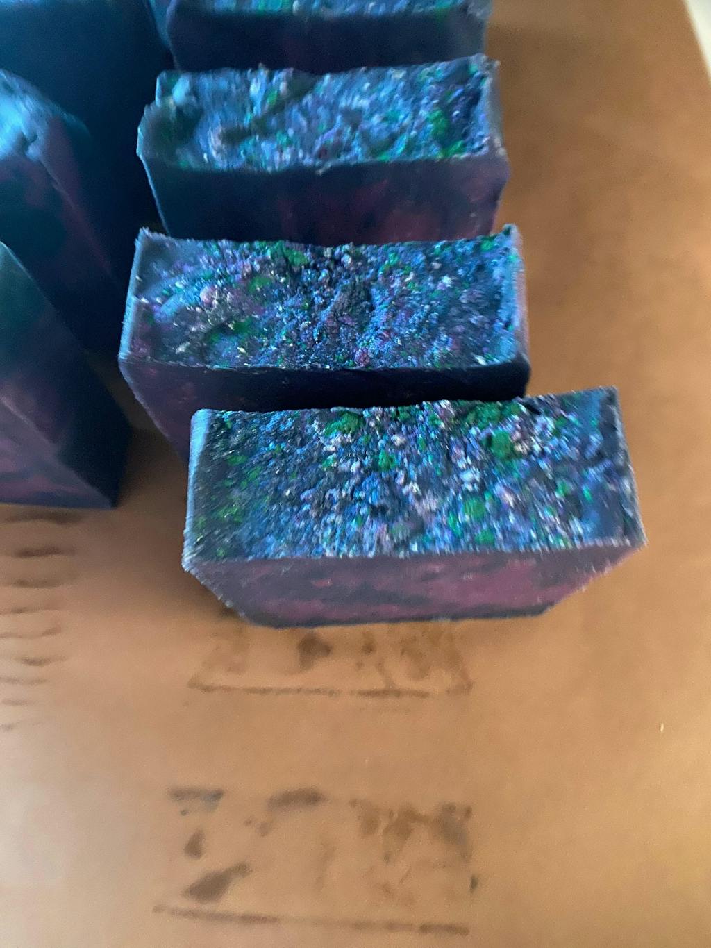 Let me start out by saying that historically we have had the hardest time finding a purple mica that stayed purple or performed at this level but BABY Heliotrope is that girl she is THE MOMENT. This is gorgeous, rich, and makes you feel daringly sinful in all the right ways. If no other color would have made me committed to this company the performance of heliotrope has made me a die hard. Also featured in this bar is space walk which I did a separate review on.
