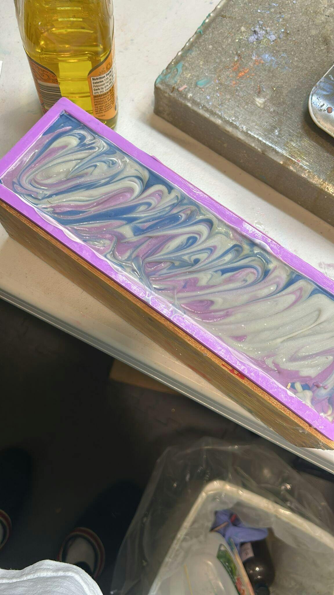 In CP soap, Luna will create a lovely light grey (unless brushed lightly on top, post-cure), while MP soap brings the blue and purple shimmers out in force.