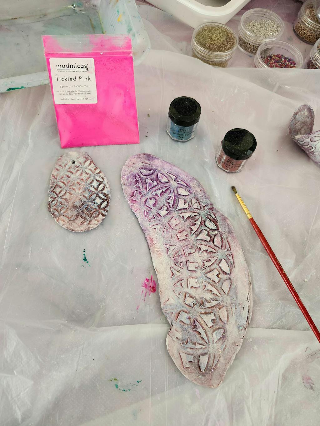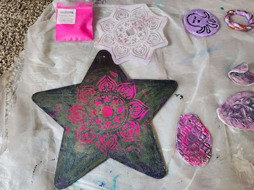 I'm new to micas and use them with matte gel, with a paintbrush, on epoxy, on acrylic, mixed in with epoxy and frankly as much as I can. I'm obsessed with Mad Micas and THIS NEON PINK. Please see photo below. I used it directly on the clay piece and then on a wooden star that has acrylic + a layer of matte gel+colorshift mica and now pink applied directly to a matte medium-tacky layer. I can't wait to see how I use it next!