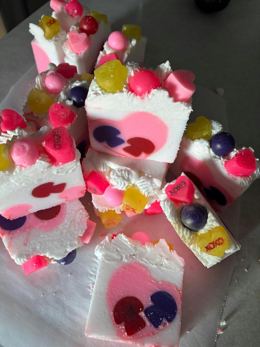 In clear MP soap the pearlescence and shimmer are clearly visible. In CP soap it is ACTUALLY the perfect bubble gum color.
