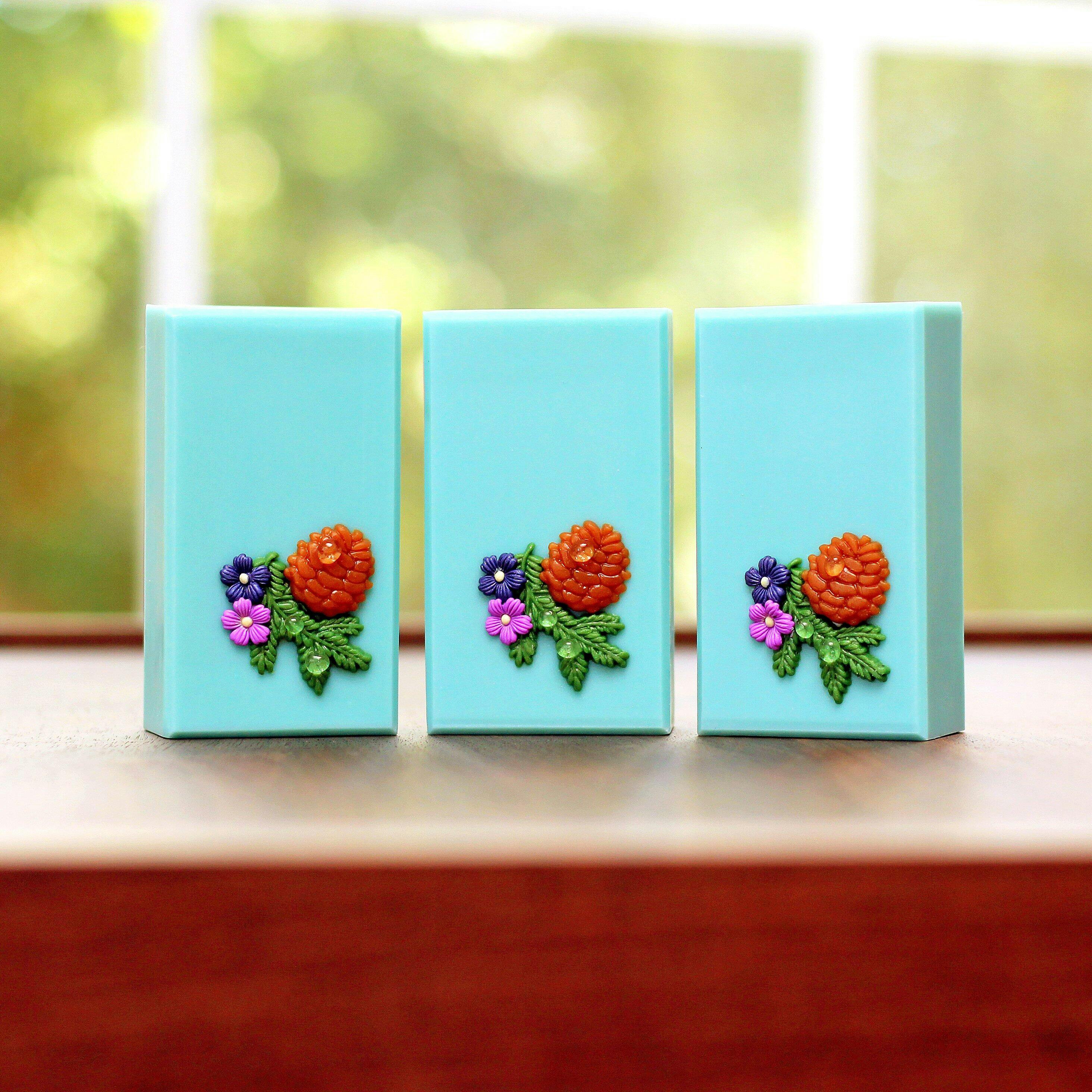 This is a gorgeous, matte light blue color! In cold process, it does take on a slightly yellowish tint, likely due to the olive oil in my recipe. I'd add a pinch of purple next time to offset that. Otherwise, it's stunning! Pictured is my Rain Kissed Spruce soap.