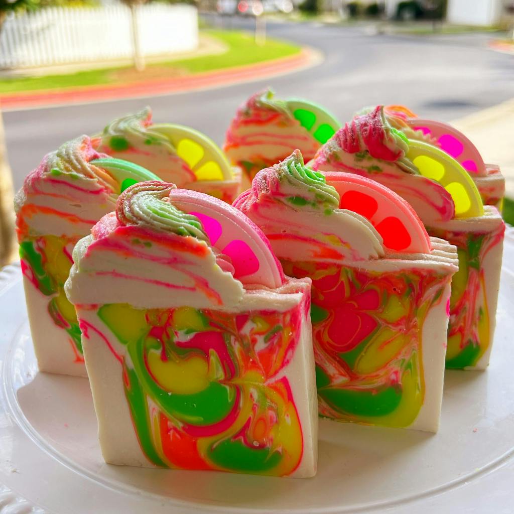 These Neons are stunning and in layers pair together beautifully with essential oils in my Vegan Coconut Milk Collosal 13 oz. Salt Bars as well as an artisan Soap.