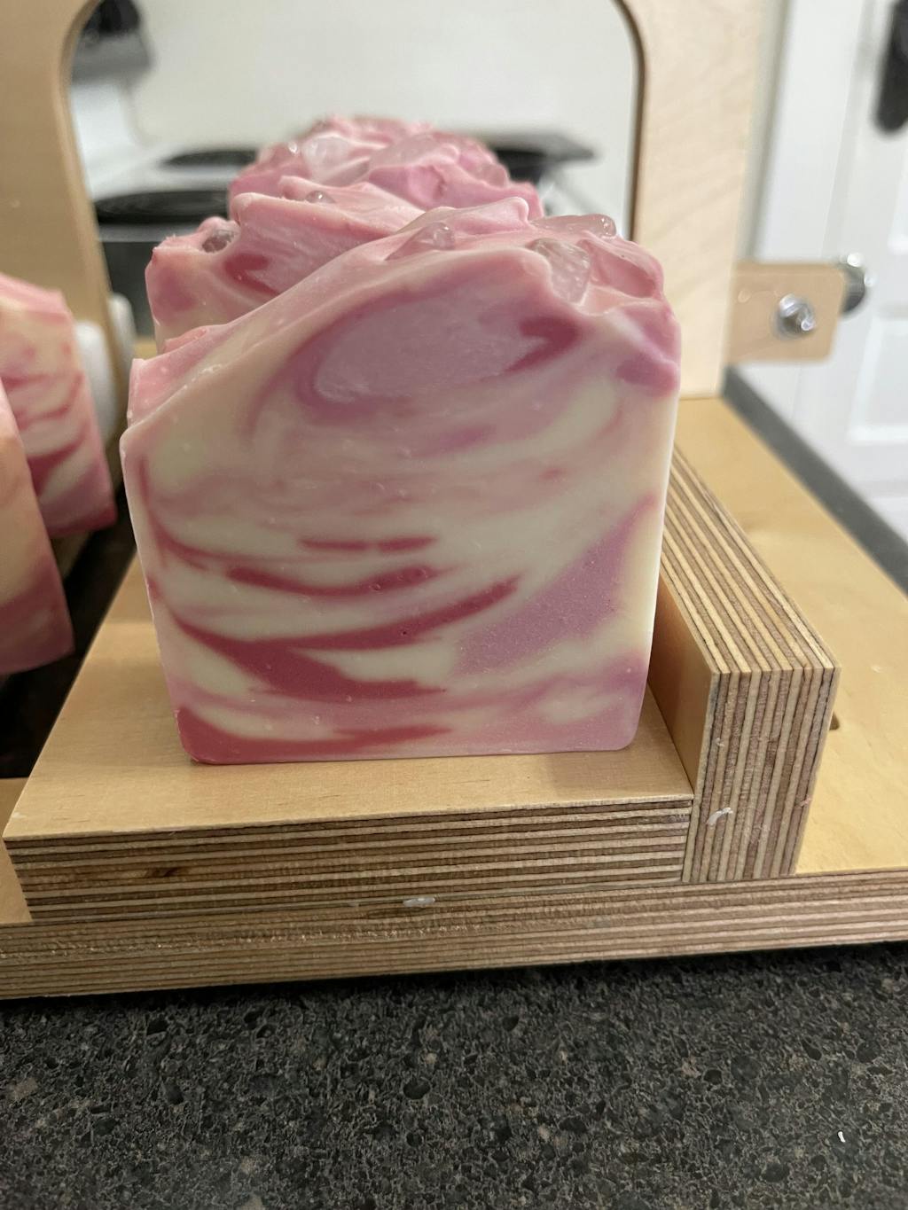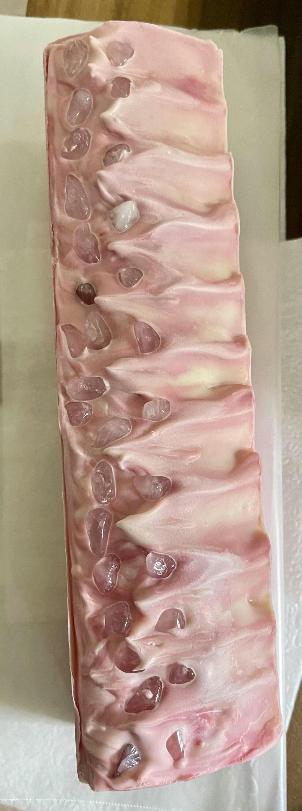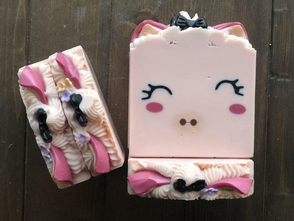 Sometimes, less is more. Obviously the pink color is not as saturated but it's the only choice that made the most sense for me when I my soap is themed after rose and cherry blossom fragrances.