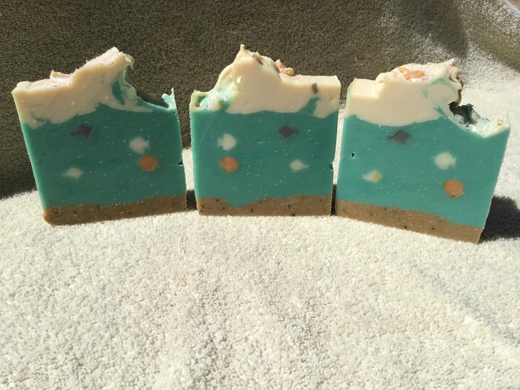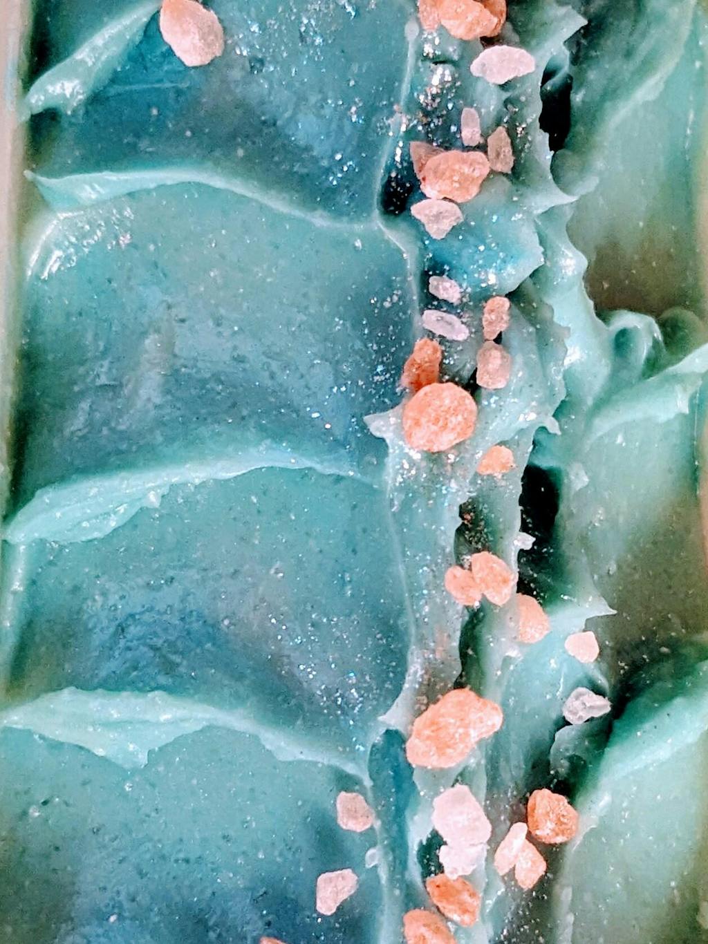 In epoxy resin and clear MP soap, Sea Glass looks just like the powder. In CP soap (due to the green hue in olive oil), it has more of a teal color, while incorporating it into a cream base for eye shadow shifts it towards blue. It's truly as varied and beautiful as its namesake.
