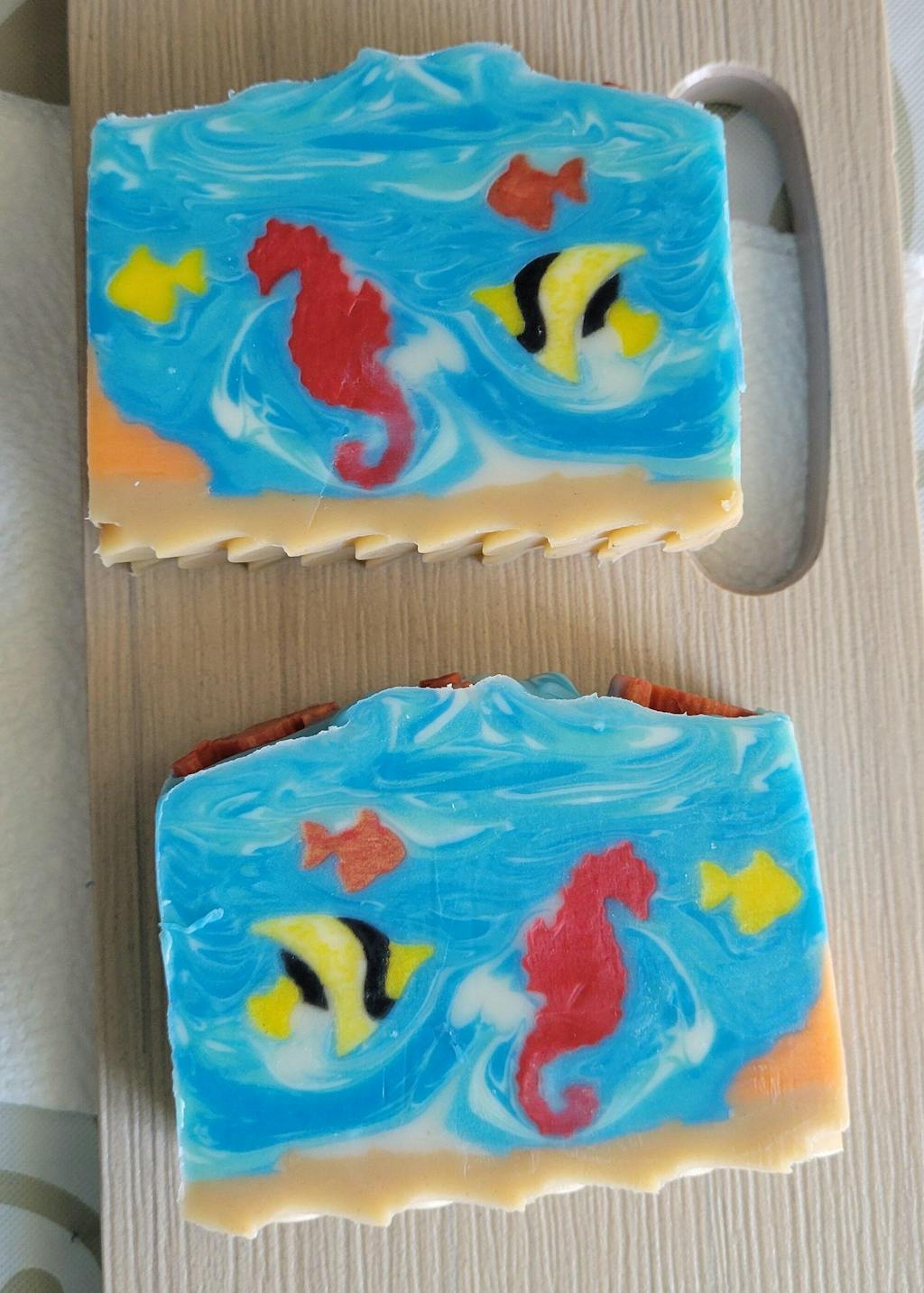 Sea Glass Mica the color I didn't think I needed till you sent a sample and I fell in love! There are 2 shades of blue and sea glass mica for the water.