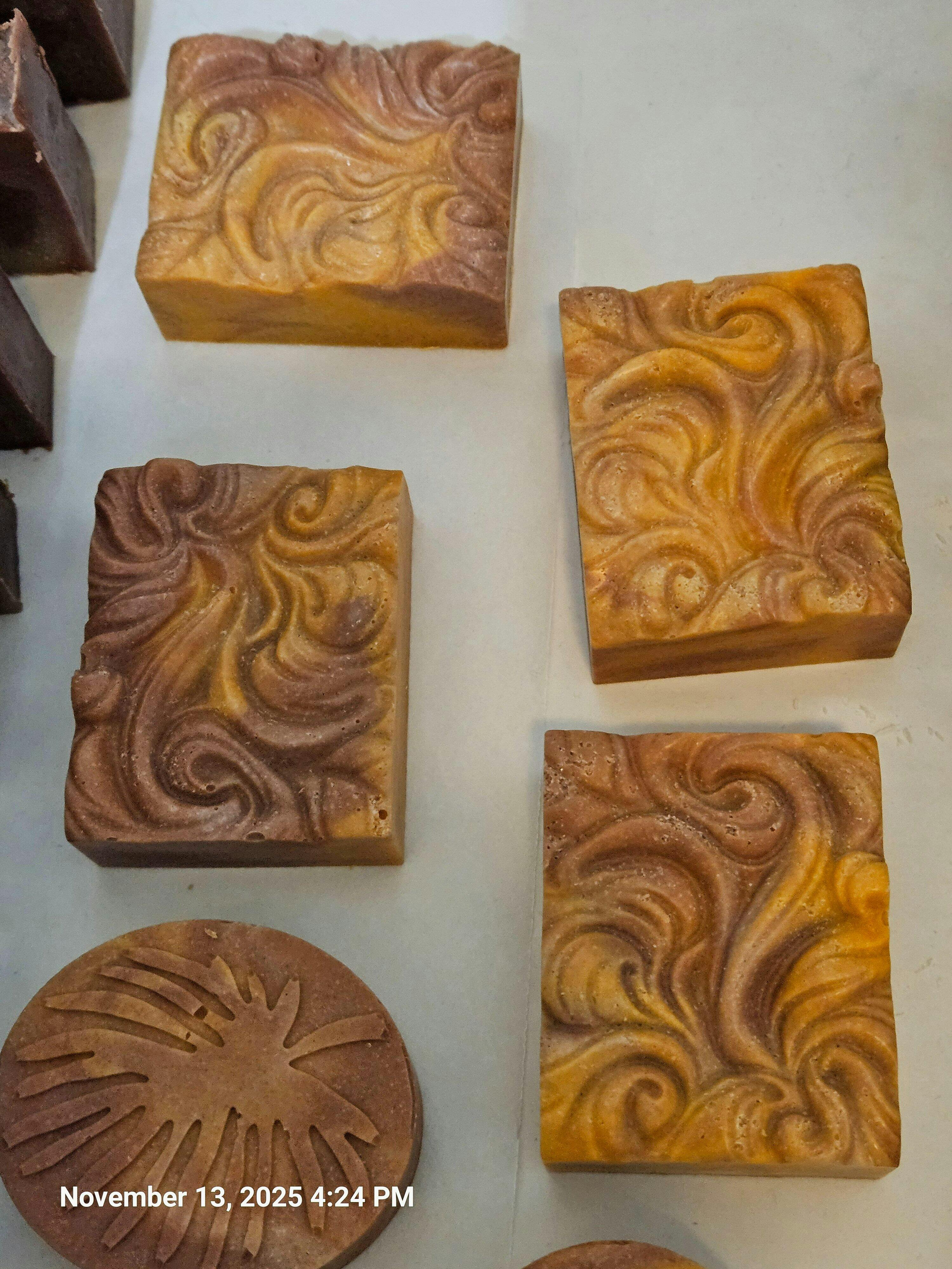 I can't think of a better mix than Summer Bronze and Marigolds for my CP Quiet Orchard salt soap. I am really pleased with how well these colors play alongside each other.