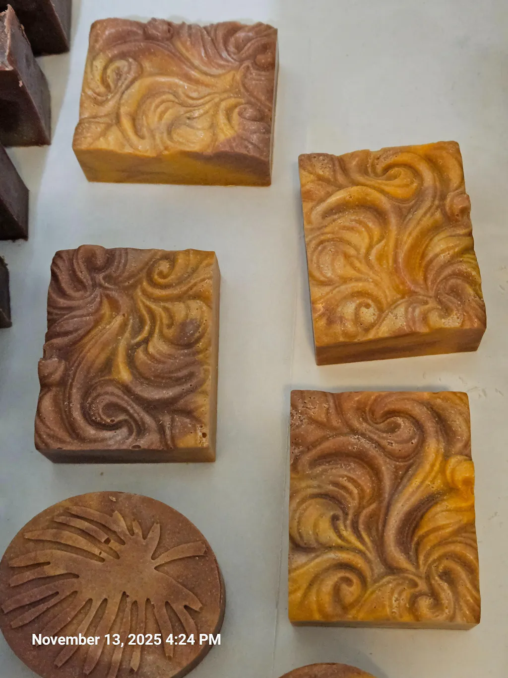 This mica incorporates really well into soap batter. It has a nice sheen to it but not too sparkly. To me, it's got a little orangish tint that makes it a bit more unique than your average brown bronze.